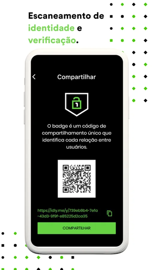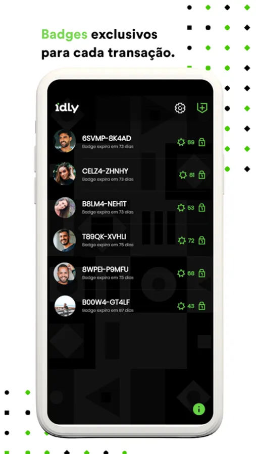 O Idly é um aplicativo de identificação virtual que funciona como um intermediador de relações oriundas do mundo virtual. Ao se cadastrar, você é identificado exclusivamente por uma chave digital, seus dados pessoais não são expostos, e todas as relações que você criar são identificadas por um código que chamamos de badge.