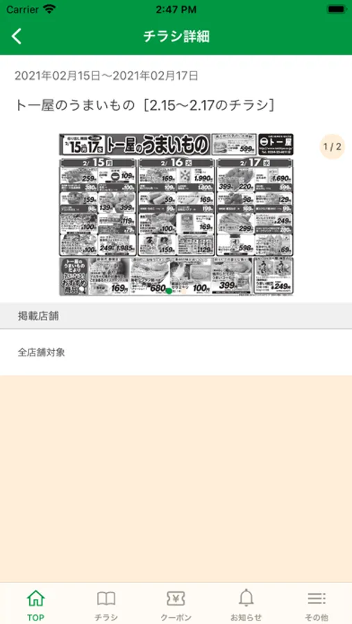 お得なクーポンや最新チラシ、最新情報など便利で楽しいコンテンツが満載のアプリです!