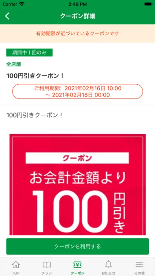 アプリで会員になると、割引などのお得なクーポンを受け取ることができます。