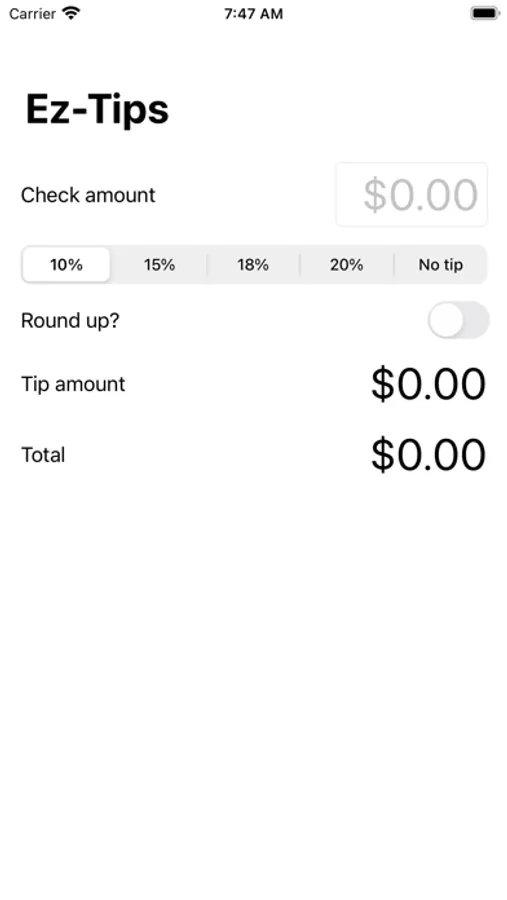 Easy tip calculator, with rounding functionality.
