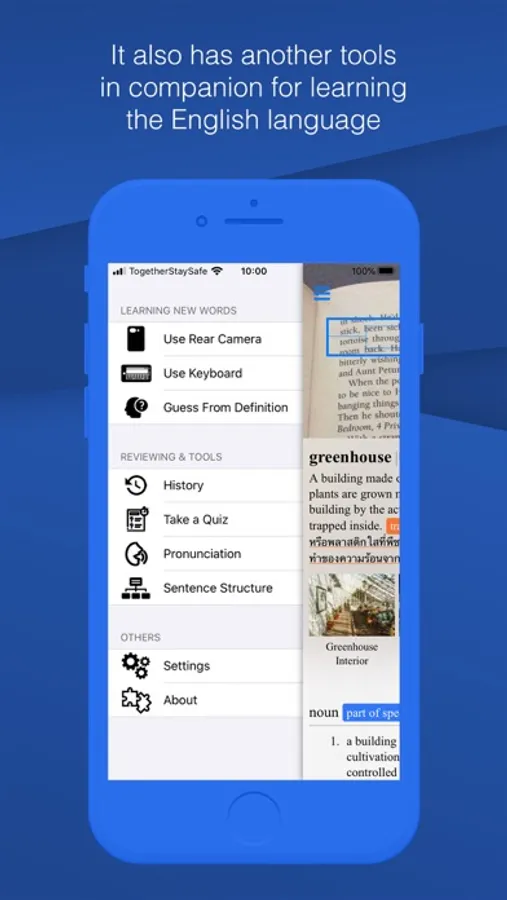 - Point towards unfamiliar words on books and newspapers to capture and get their definitions in its dictionary which has more than 150,000 words including technical terms and phrases.