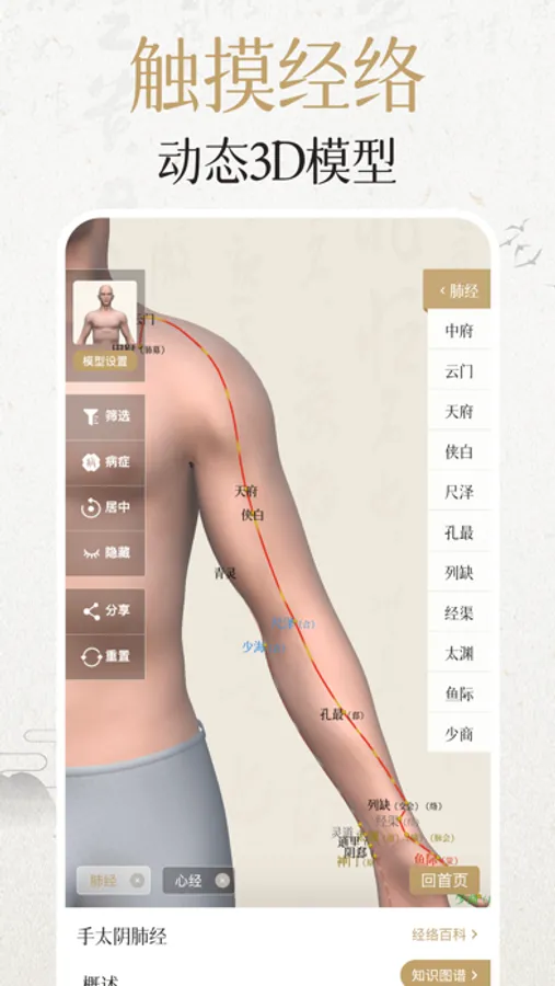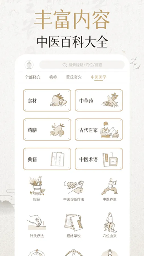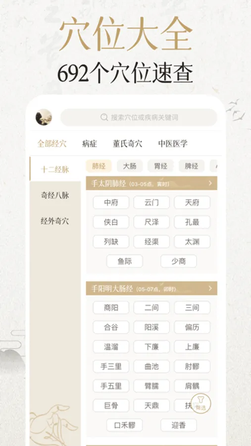 中济经络穴位提醒用户,如身体不适,请及时就医。