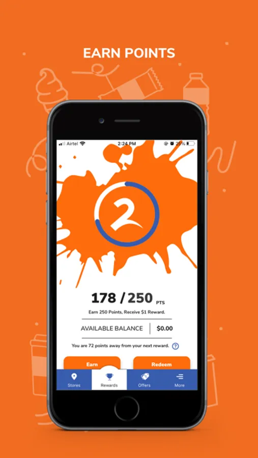Earn 10 points for each $1 you spend on food and drinks (some exclusions apply). Each gallon at the pump is worth 5 points. Upon accumulation of 250 points, you will receive $1 to spend on fuel or in-store purchases (some exclusions apply).
