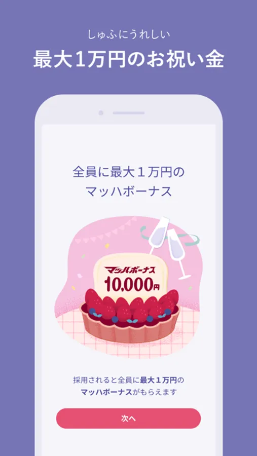 採用されると、求人側が用意しているお祝い金とは別で、マッハバイトより最大1万円のマッハボーナスを用意しているのが最大の特徴です。