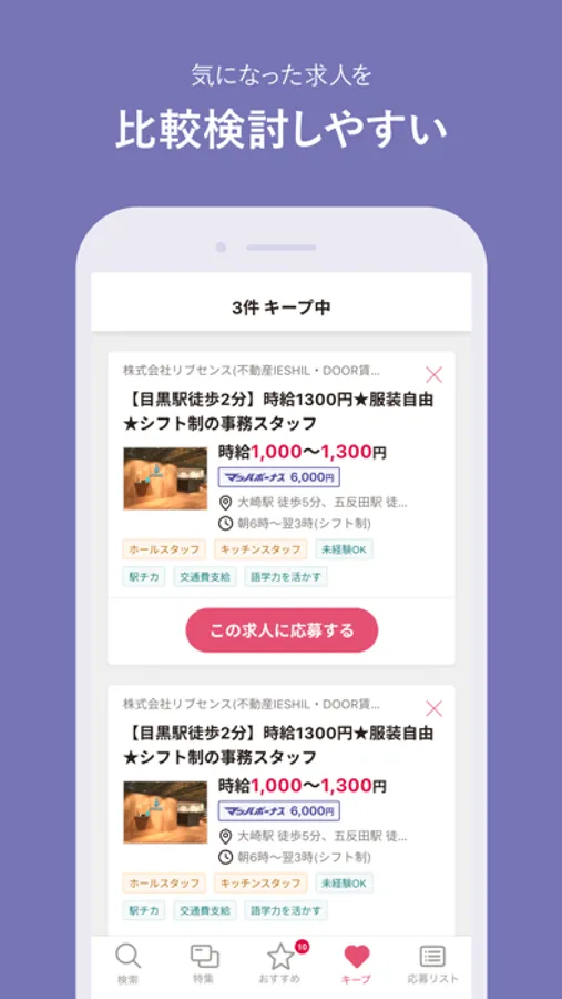 ・気になる求人は「キープ」して、家事の合間に応募出る