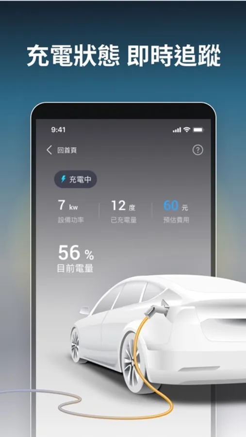• 即時掌握充電狀態、費用,碰到任何問題,24 小時客服在線當你的後盾!