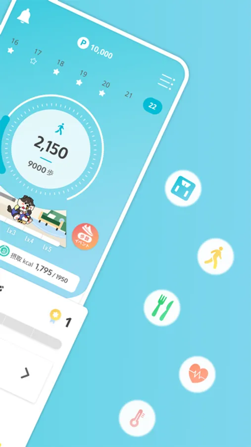 ・健康活動に応じてアプリ内ポイントをゲット。電子マネーやギフト商品と交換するチャンスも!