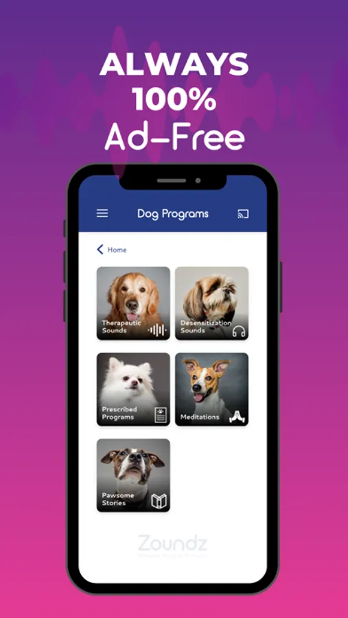 Zoundz: Therapeutic Sounds for Pet Anxiety is designed to have the maximum calming effect on