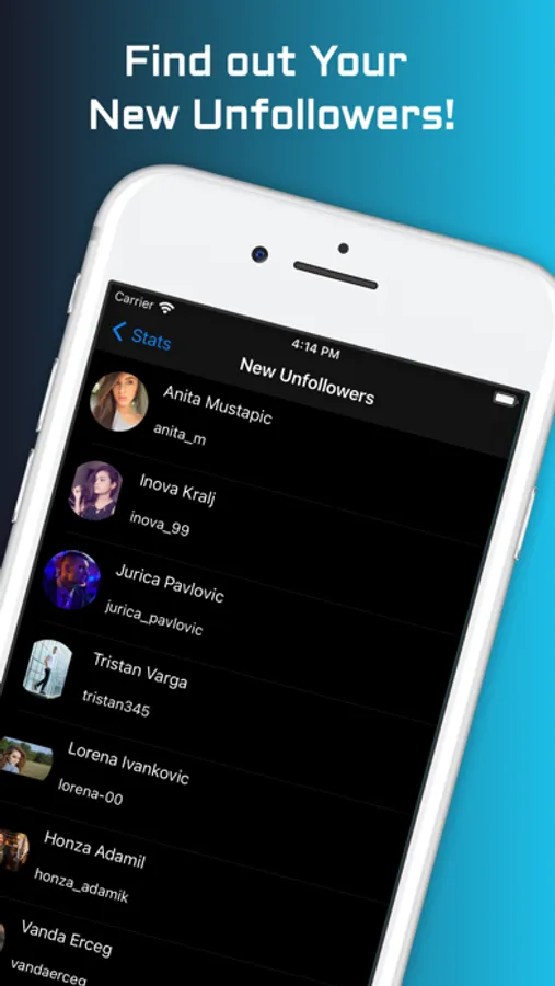 Your unfollowers: who unfollowed you! This is very hard for you to keep track it by yourself, we know you do not want to waste time by checking who unfollowed you one by one. With Stalker+ we analyze it for you, and you can reach the results in seconds. This feature is available in pro version.