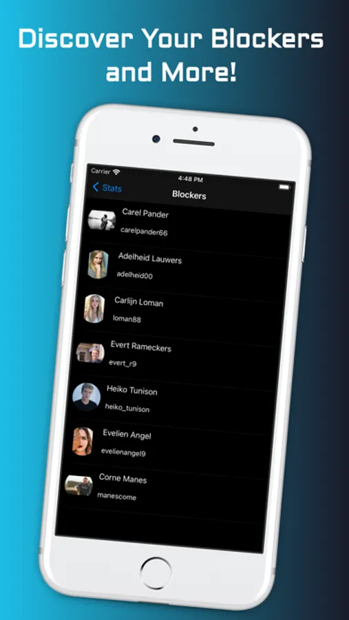 Your blockers: who blocked you! You do not have to check every day to see if anyone blocked you. Now Stalker+ for Instagram is doing the hard work for you. You just need to click the blockers. This feature is available in pro version.