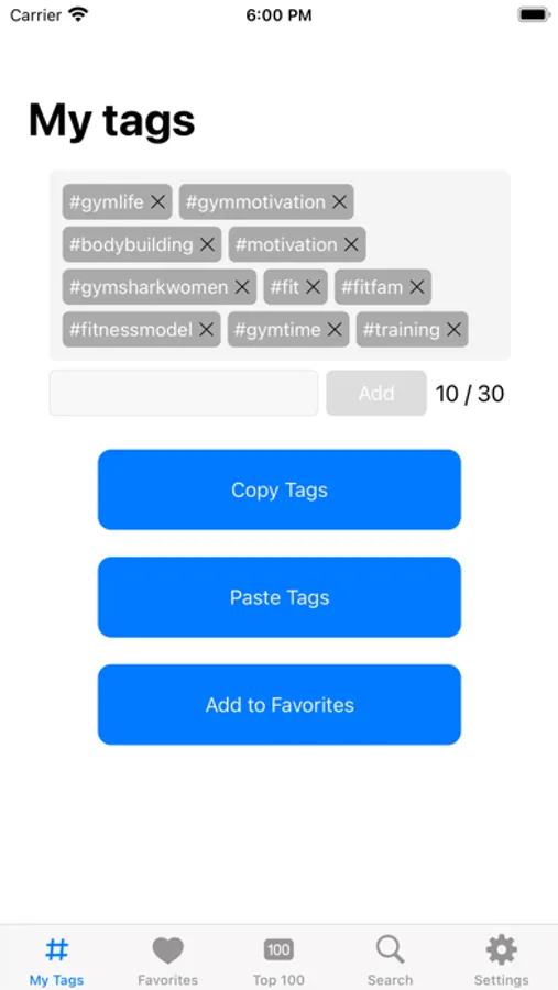 You are able to add your own tags, mix them with existing and save them in a separate card for reusing. The app has the hashtag generator, which helps to generate a hashtags set.