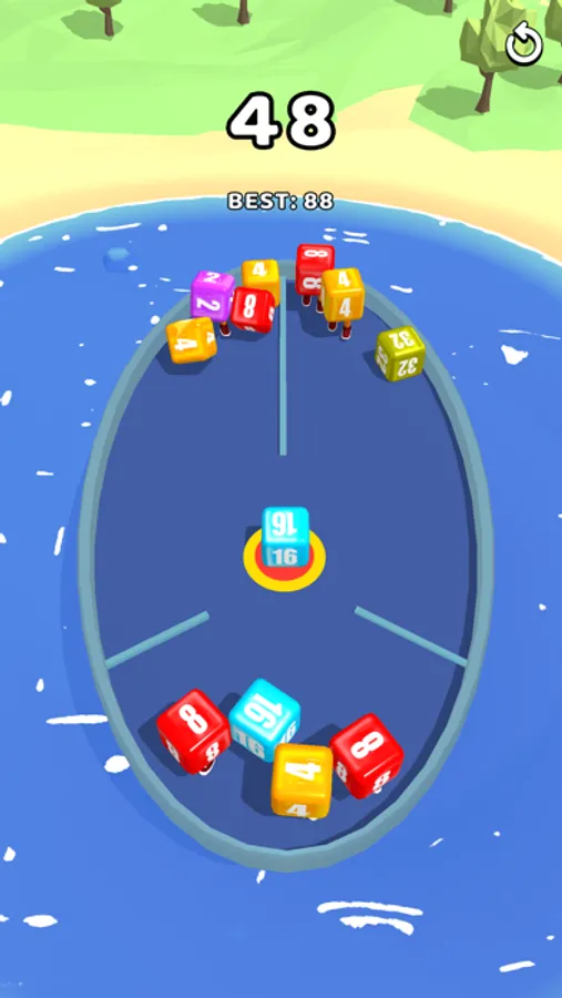 Swipe to hit and merge the cubes before they reach to center! If you slow they will walk to you. You can hit them to drive away.