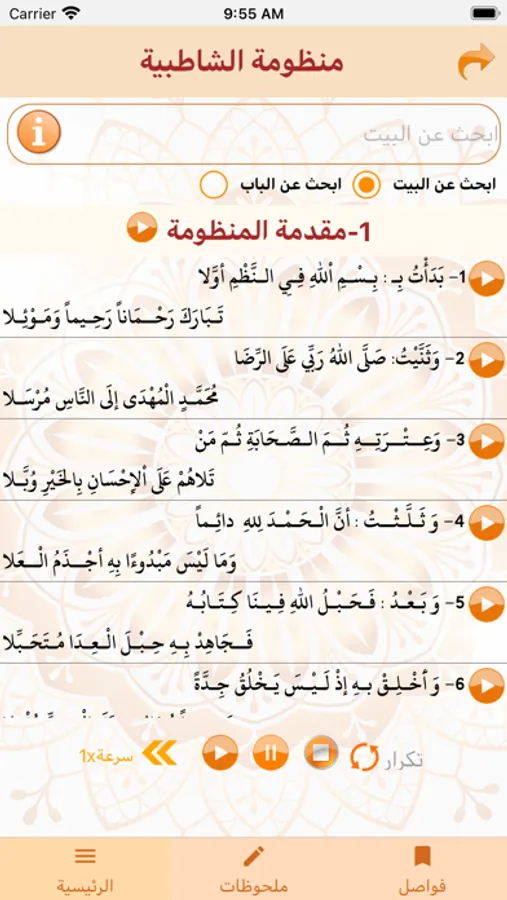 - الانتقال إلى شرح البيت مباشرة من المنظومة من خلال الضغط عليه.