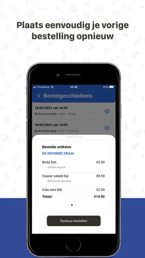 Via de favorieten functie of je bestelgeschiedenis ben je slechts enkele vingerdrukken verwijderd van een nieuwe bestelling. Echt handig!