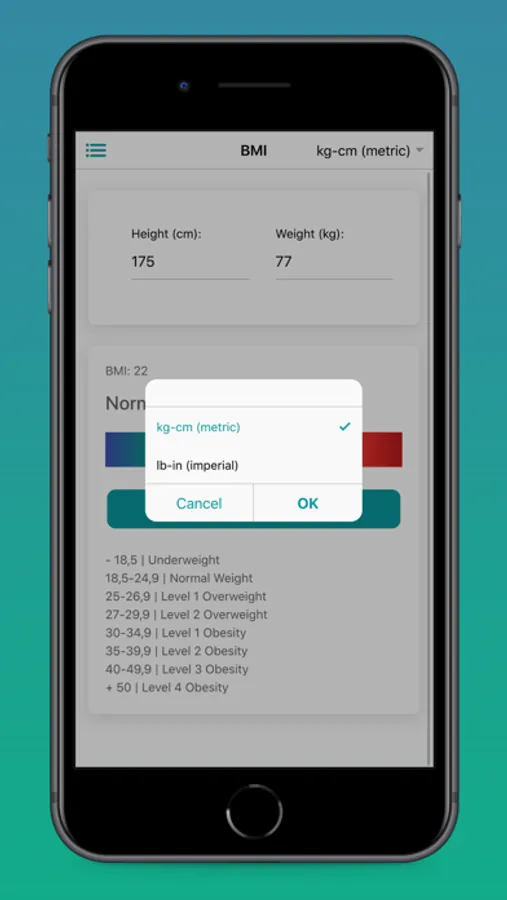 App is designed for people of different ages and supports for both metric and imperial.