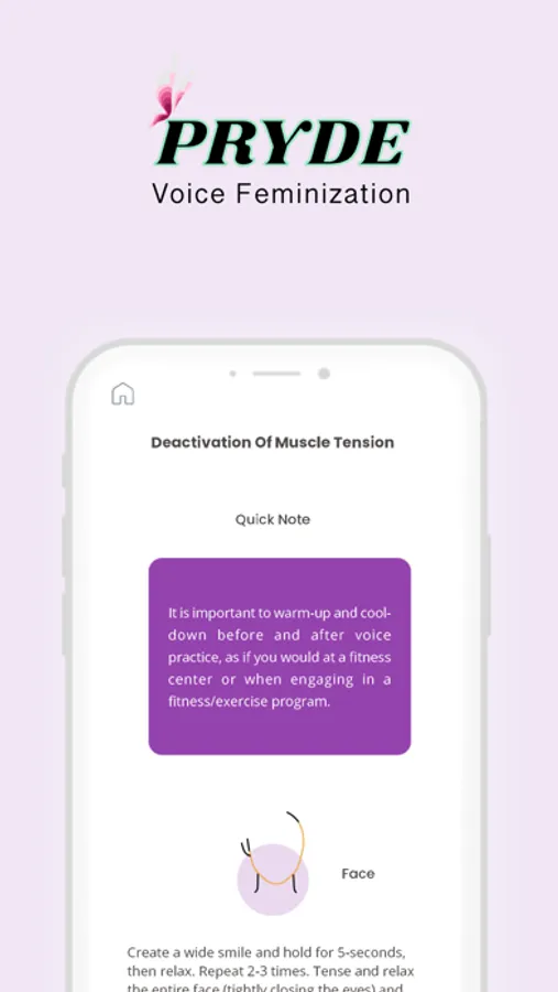 The PRYDE Voice Feminization app is a voice modification training program. This app contains the following: