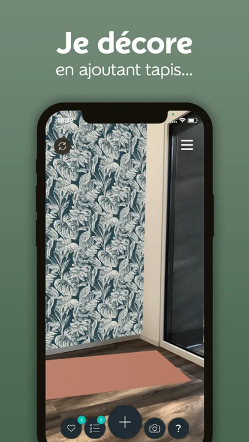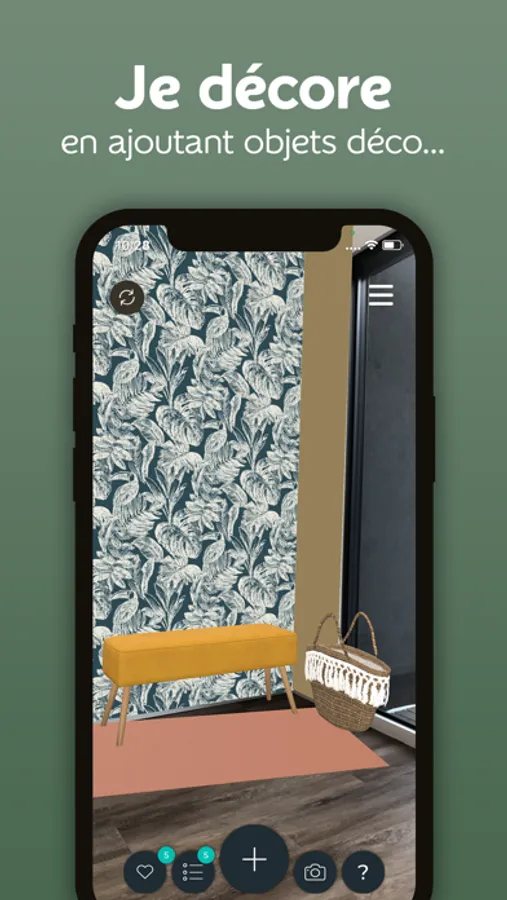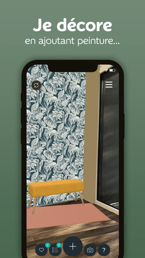 Délimitez votre mur en suivant les indications et naviguez dans notre catalogue de plus de 1200 références pour essayer virtuellement nos papiers peints et peintures dans votre intérieur.