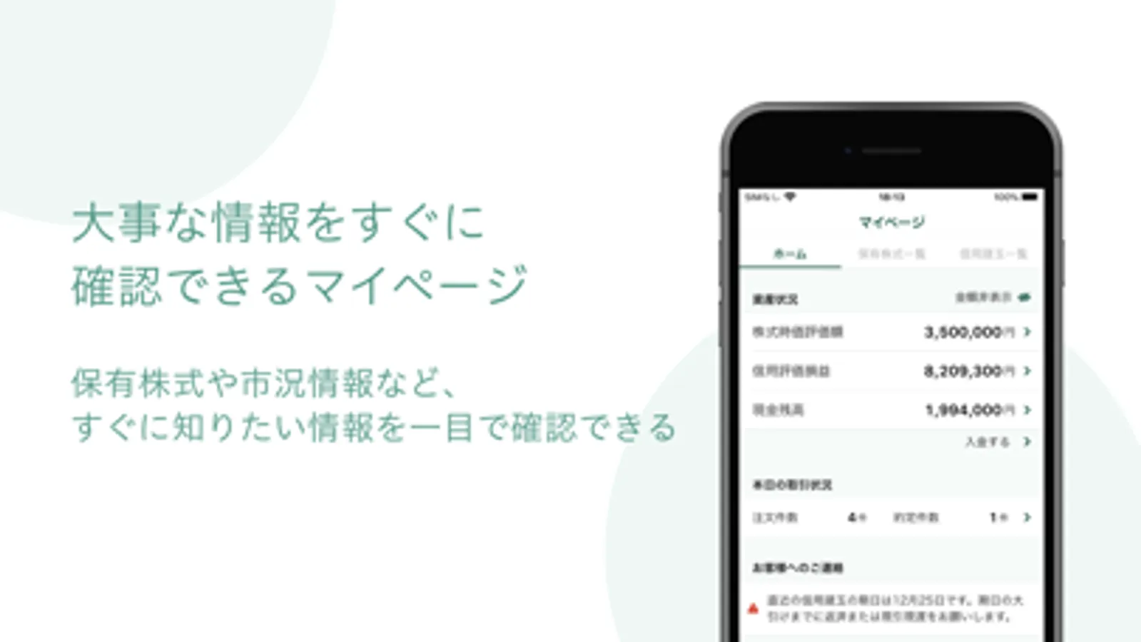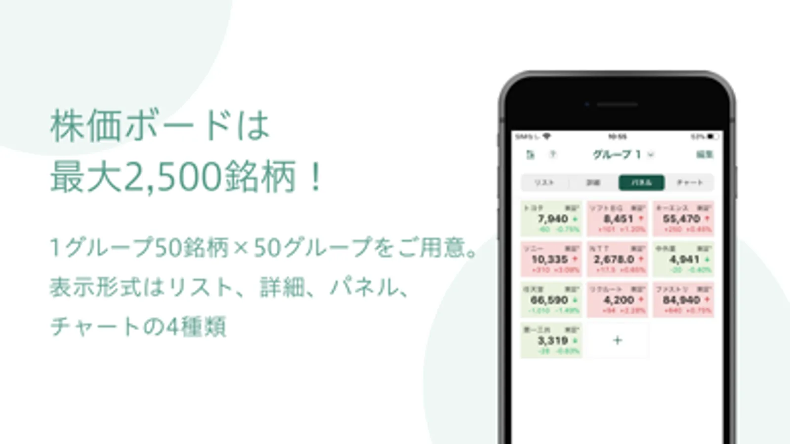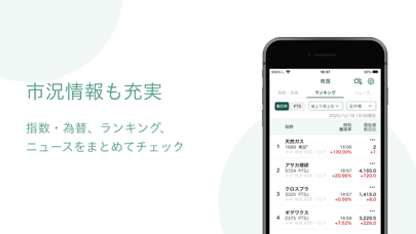 シンプルな画面で、情報検索から銘柄分析、発注までこれ1つで完結できるアプリです。