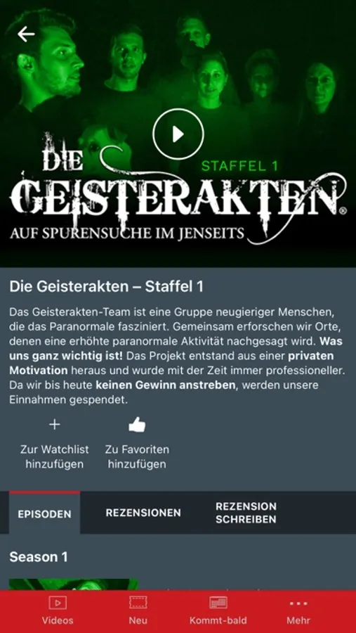 Auf GHOSTflix findest du Serien, Dokumentation, Interviews und exklusive Produktionen zu deinen Lieblingsthemen rund um Geister, Dämonen und das Leben nach dem Tod in brillanter Bild- und Tonqualität. Weltweit erfolgreiche Formate mit deutschen Untertiteln.
