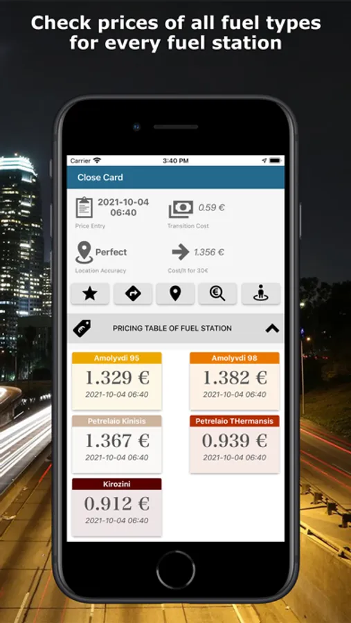 The application receives price data several times per day from the Cyprus Fuel Prices Observatory (an official Cyprus state service). As a result the fuel station owners are the only responsible for the data accuracy displayed by the application.
