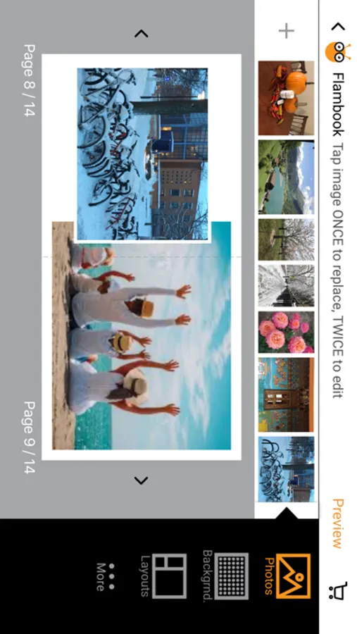 Indulge further at your sweet will to adjust/edit the pictures in a variety of ways, add more pages, bring in more pictures, add text, change fonts, add backgrounds, embellishments, etc, play with different layouts, and a lot more... you will simply love the intuitive ease and the responsiveness of the Flambook app.