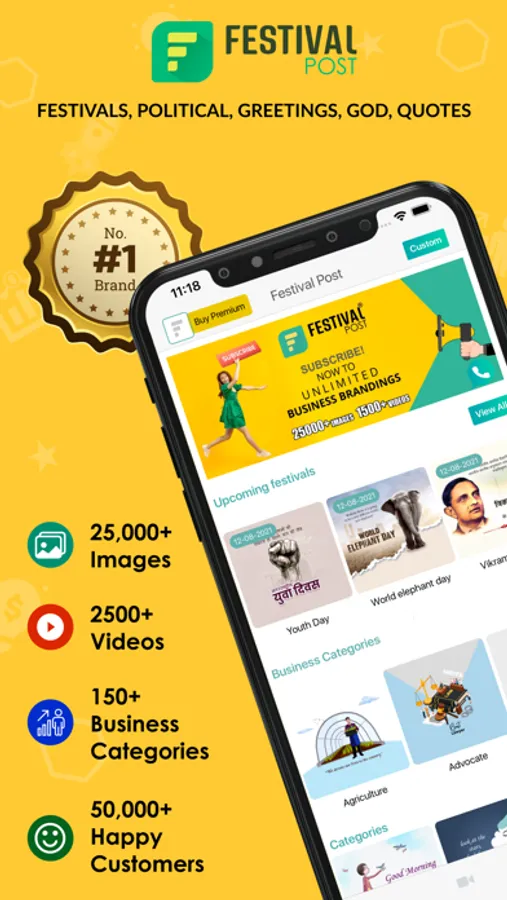 Being the No. 1 Indian Festival Poster Maker App, Festival Post offers unique Posters & Videos for all upcoming national and international days.