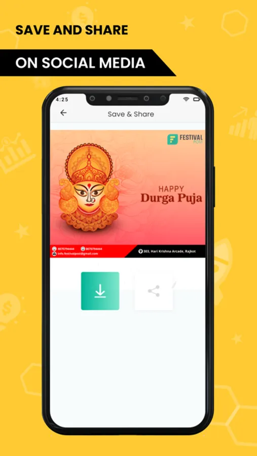 We will add daily Hindu festivals, quotes, birthdays, celebrations, motivational, freedom fighters, god & business ethics images in our app so all businesses or companies can promote their business with the festival images on social media 365 days.
