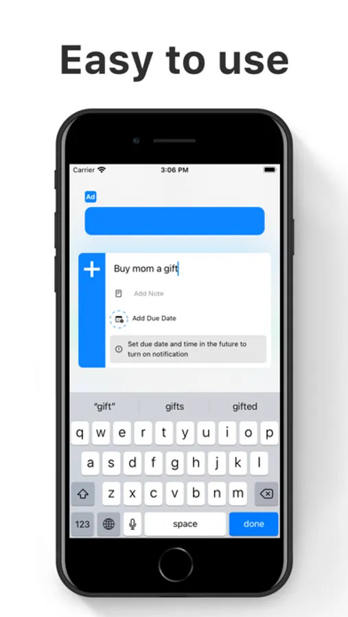 The tasks are clearly readable and sorted by the time you want it done, so you don't have to dig into a pile of mess that is a list of things you don't care about at the moment. The list is separated into timeframes, so you know how free you are today, tomorrow, or in the future.