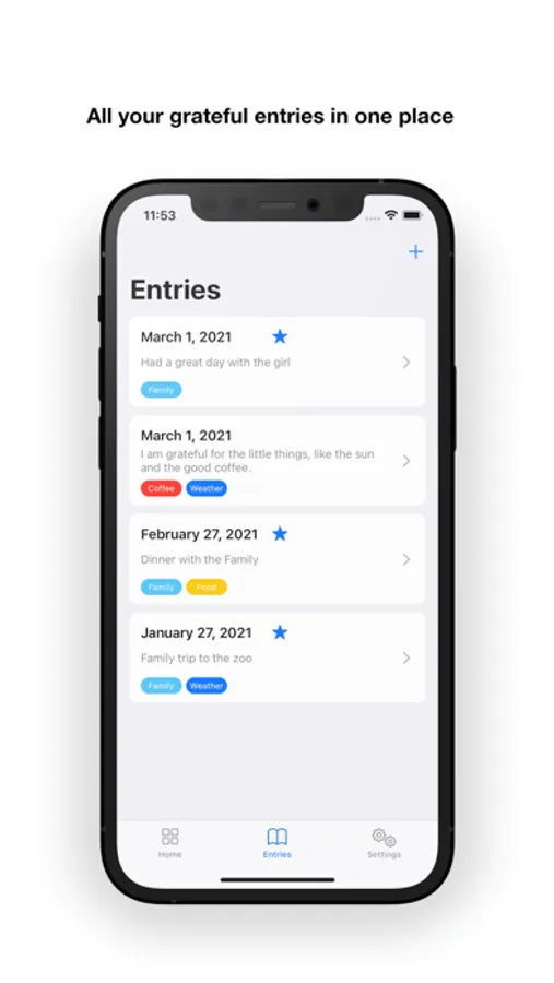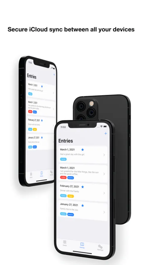 Your entries are available on all your devices. The synchronization is securely based on iCloud. All your data is in your control and only you have access to it.