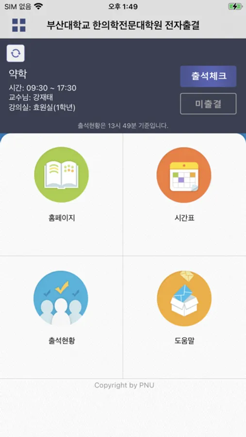 부산대학교 한의학전문대학원용 전자출결 앱입니다.