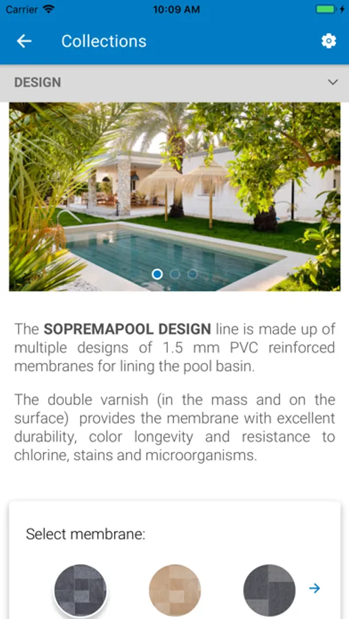 It allows to view the collection of SOPREMA reinforced membranes for pools and create the pool of your dreams thanks to the configurator.
