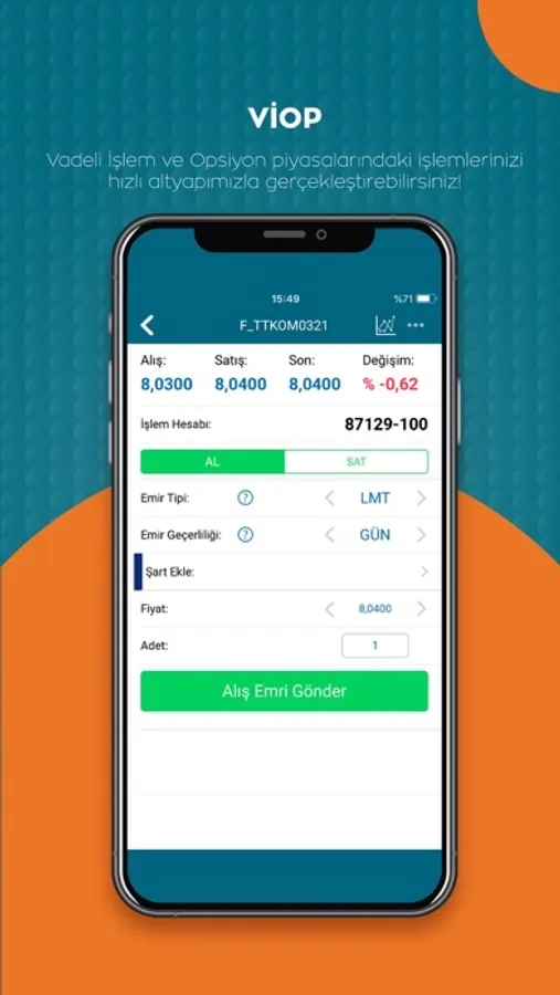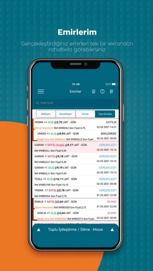 With its simple and easy-to-use menu, you can personalize your application page as you wish, create your follow-up list, access all financial markets on a single screen and make transactions in seconds.