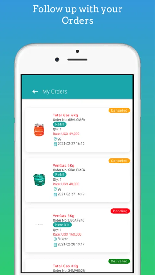 A convenient and reliable way to order for Cooking Gas - LPG Refills, New kits and Gas Accessories around Kampala and have them delivered to your doorstep.