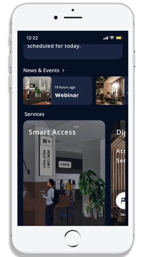 The app acts as your access card and allows you to unlock doors, whether you go to the conference room, project rooms, studio spaces, gym, sauna, bike storage or different floors you have booked. You can access the premises to which you have access rights. The Bluetooth connection detects nearby doors and you can click them open from the app.
