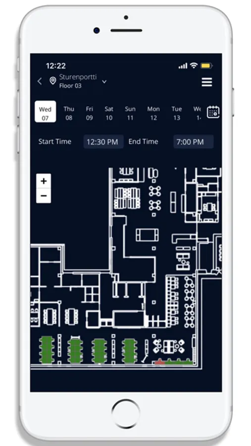 With the app, you can book a workstation in the hot desk area and book suitable meeting rooms. It helps you find the workstation you have booked. The app also allows you to find your co-workers if they have given permission to do so.