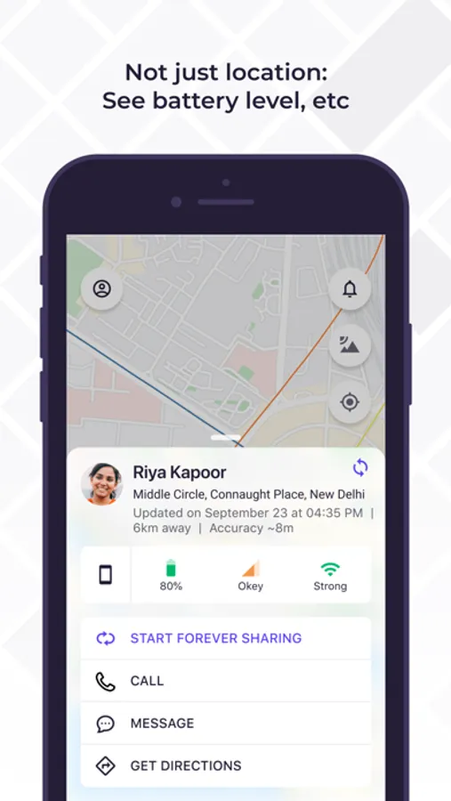 - Battery life, network strength and phone status can also be shared. This can be vital information for your Guardians and your safety.
