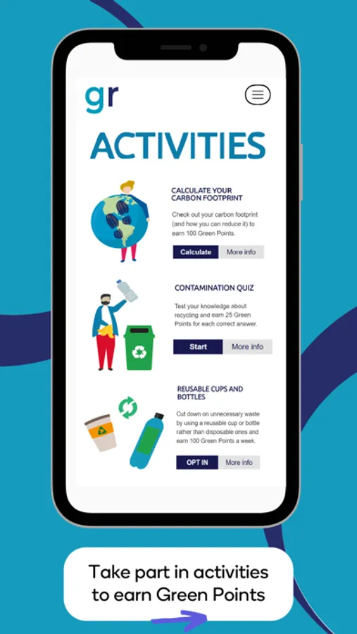 With this app you will be able to earn Green Points for your actions in themes including Get Involved, Sustainable Travel, Energy, WasteNott, Nature and Health and Wellbeing.