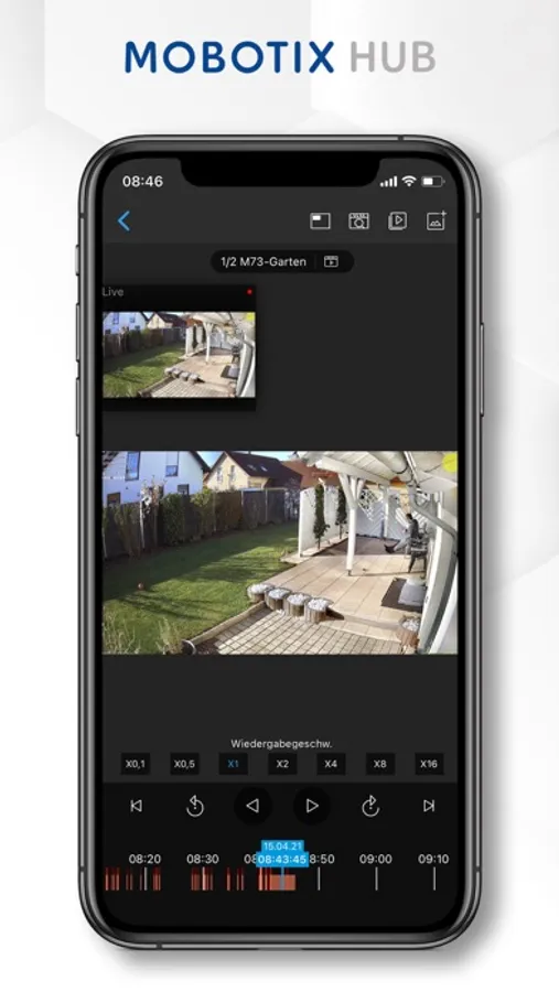 The Mobile Client application allows you to playback directly on your mobile device. You can listen to audio recordings, talk about the camera using the push-to-talk button, respond to access control requests, and receive push notifications about events and triggered alarms. The MOBOTIX HUB Mobile Client is available in various languages and supports all generations of mobile networks.