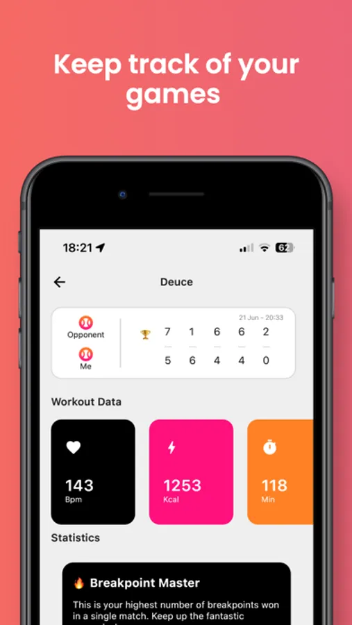 With Deuce, you can easily track your games using your watch and save them on your iPhone for later analysis. Whether you're a serious athlete looking to improve your performance or just a casual player looking to keep track of your progress, Deuce has you covered.
