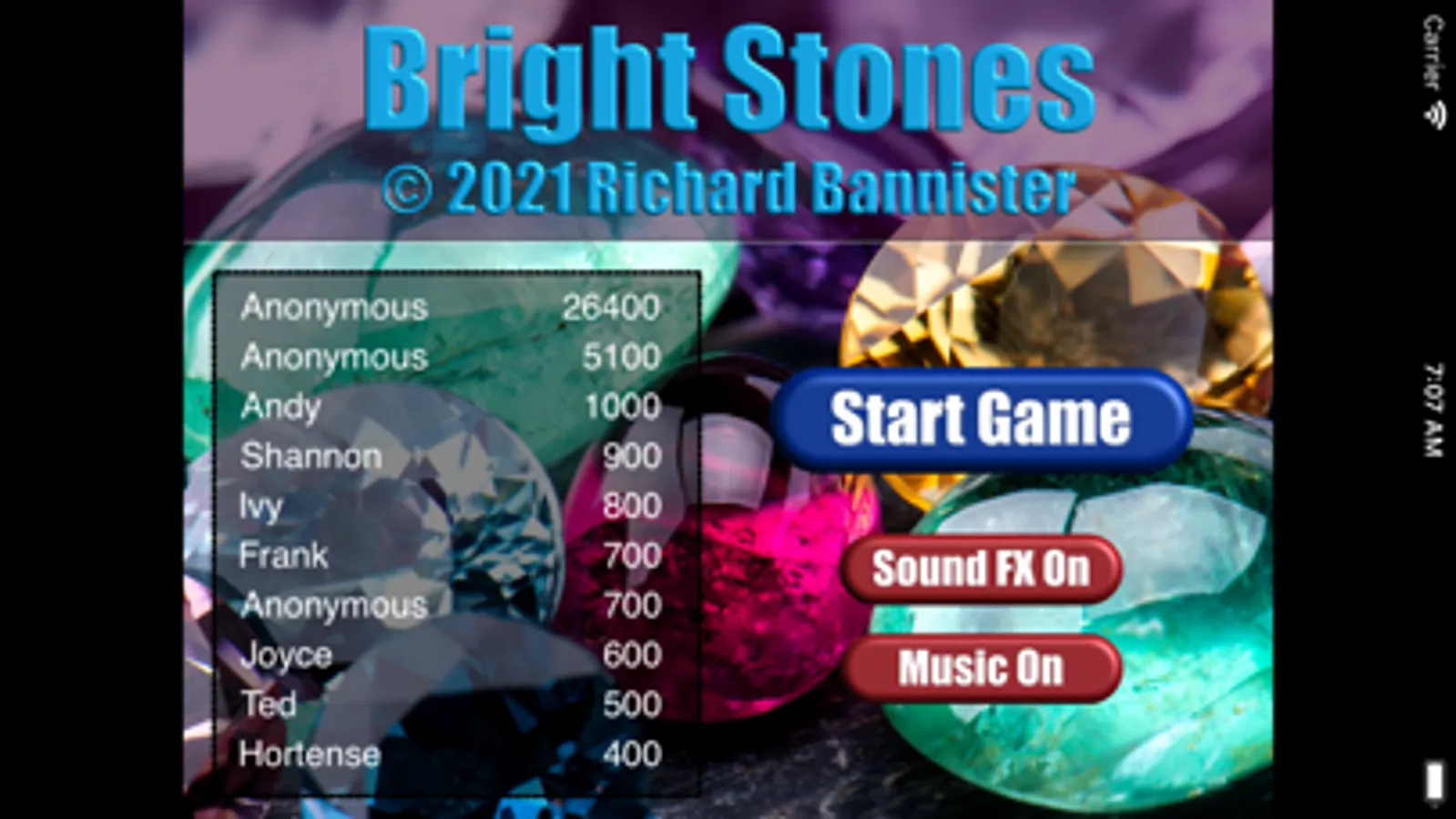 Bright Stones is a simple version of the famous match-three puzzle game. It's perfect for a few minutes of procrastination!
