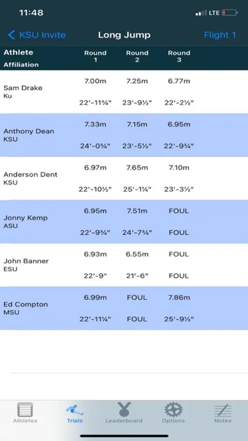 Track Meet Manager is a meet manager for field events (minus the multi-events) to give you up to the second information on athletes placing, the athlete's best marks, and what round/attempt the athlete is on. You can also email out the results. This app is for officials, coaches, and parents. User can add 3 athletes in the free version, If user wants to add unlimited athletes, need to purchase the full version.