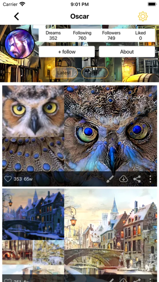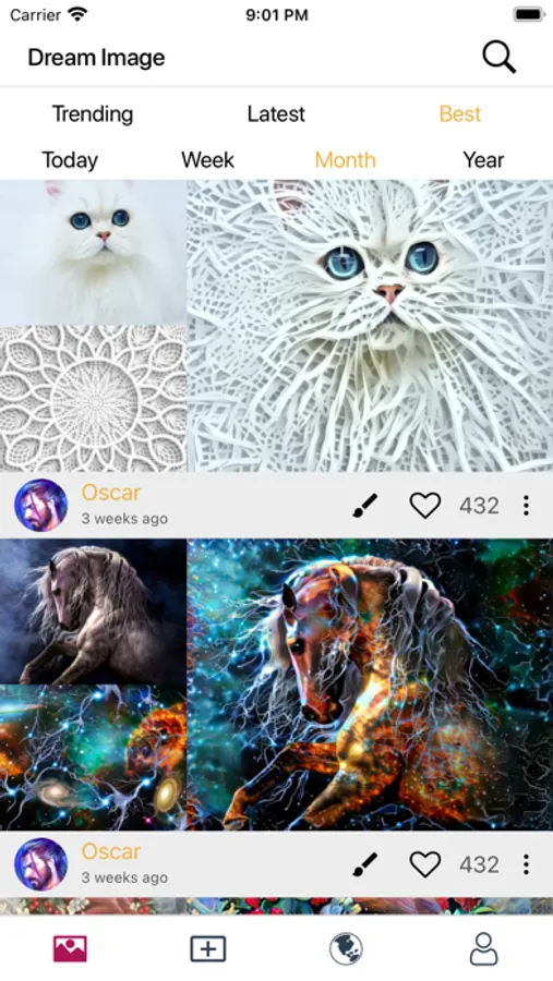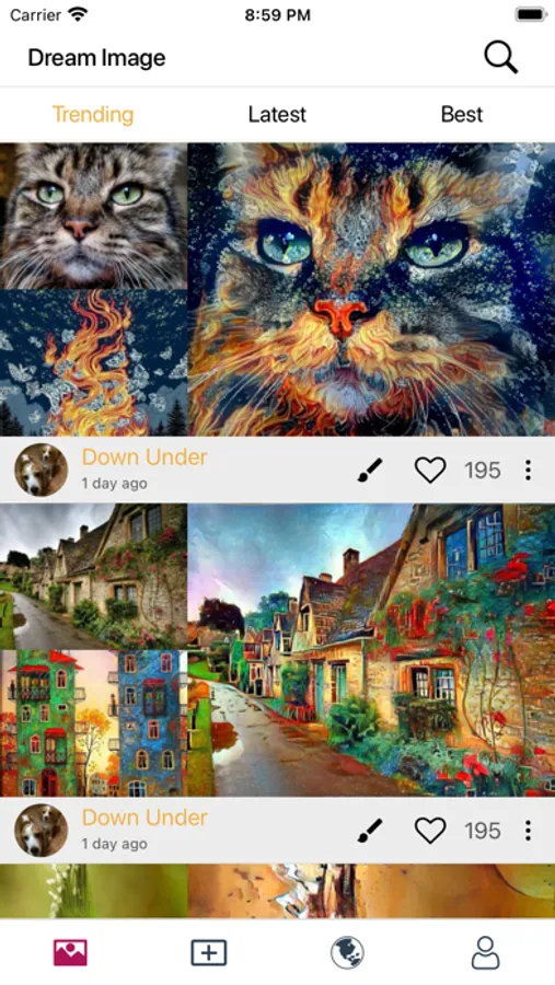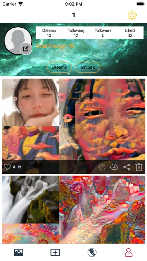 Join Dream Image's community, share your creations and get some inspiration. There is a Feed full of beautiful pictures created by the community. Follow other users, discover new publications.