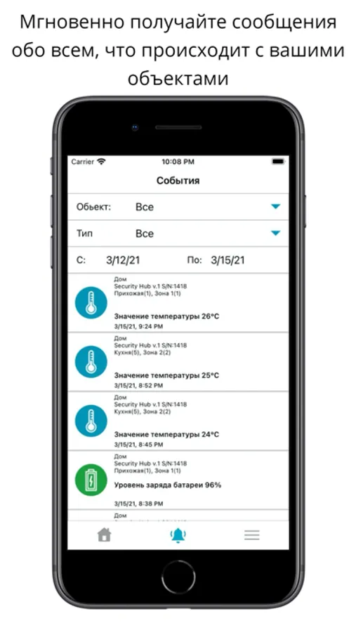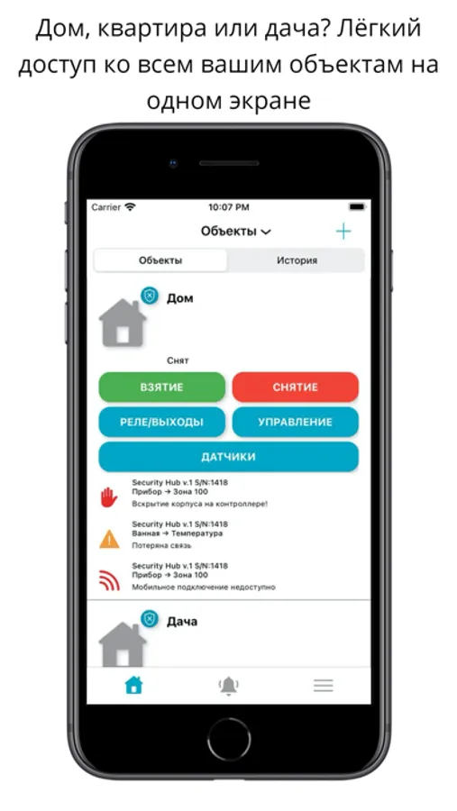 Приложение для IOS-устройств обеспечивает постоянный контроль охраняемого помещения. Вы дома, даже, когда не дома.