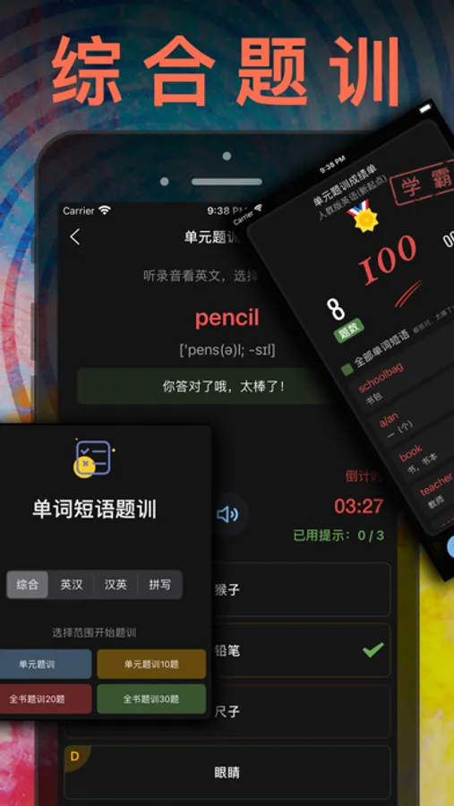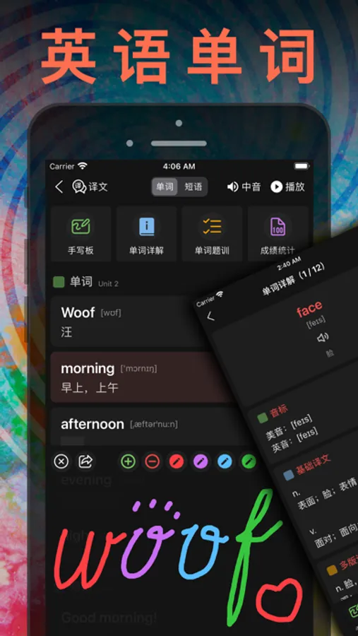 词语测验:记录学习单词短语,图标统计,让进步有个见证!