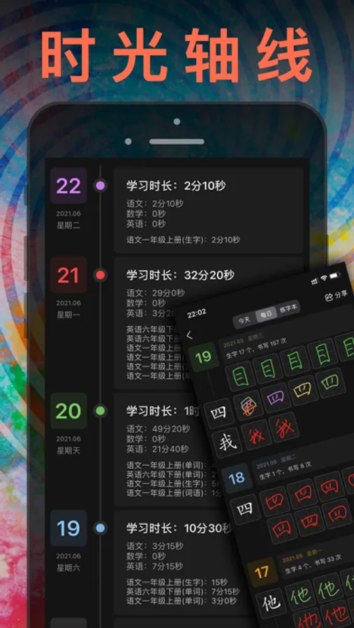 (学习成绩记录:课文学习、学习时长、单词学习、单词训练)