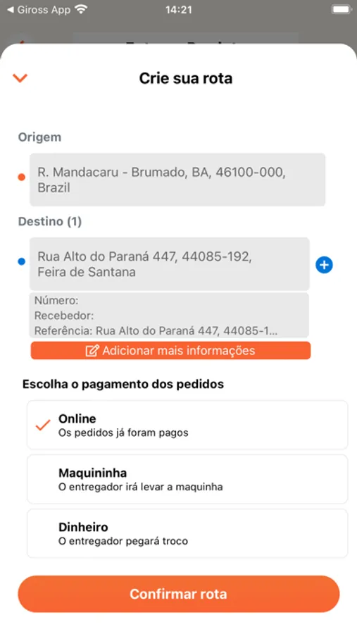 Experimente o Giross hoje mesmo e aproveite a facilidade de fazer pedidos de entrega ou viagens rapidamente, a qualquer hora e em qualquer lugar.