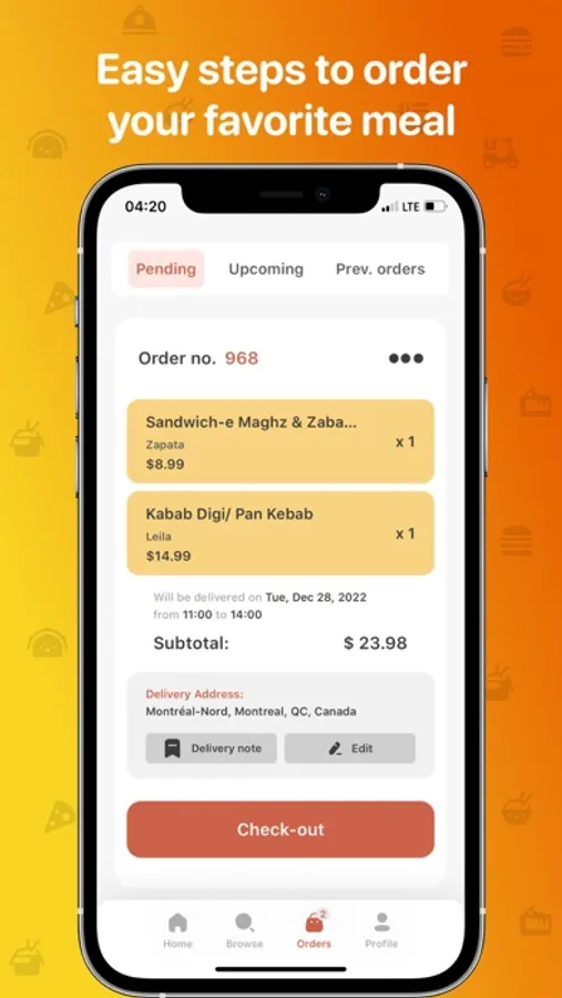 Look for your desired food based on nationality, type, cooks, and date. Select your favourite ones, share them with your friends, order online, pay online, and get them delivered.