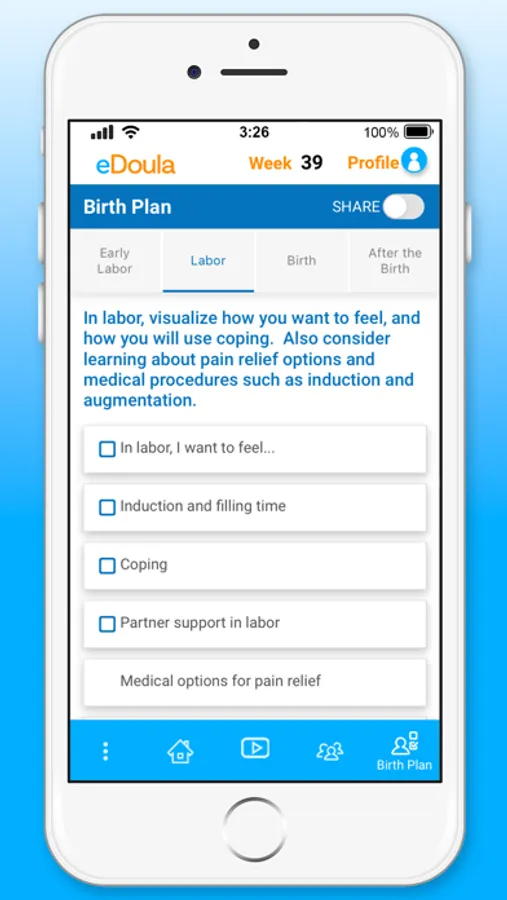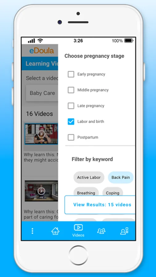 Download eDoula (from your hospital) if you have been given a code by your hospital or provider. eDoula will prepare you for your pregnancy and support you for your entire journey. Scientific evidence shows that the labor support techniques you will learn can decrease your risk of a cesarean delivery and shorten the length of labor, and will enhance your birth experience.