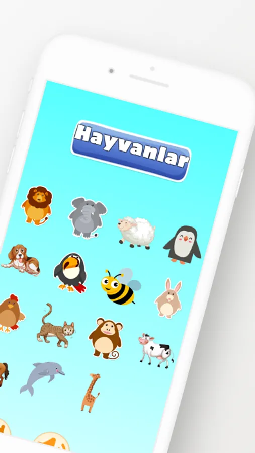 Aslan , Fil , Kuzu , Penguen , Köpek , Kuş , Arı , Tavşan , Tavuk , Kedi , Maymun , İnek , At , Yunus , Zürafa sesli ve görsel destekli öğrenecekler.