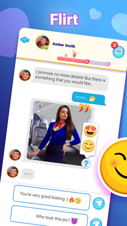 MATCH with those you like! Get to know your virtual crushes through exciting chats and fabulous pictures, react with emojis and make choices to impact the story